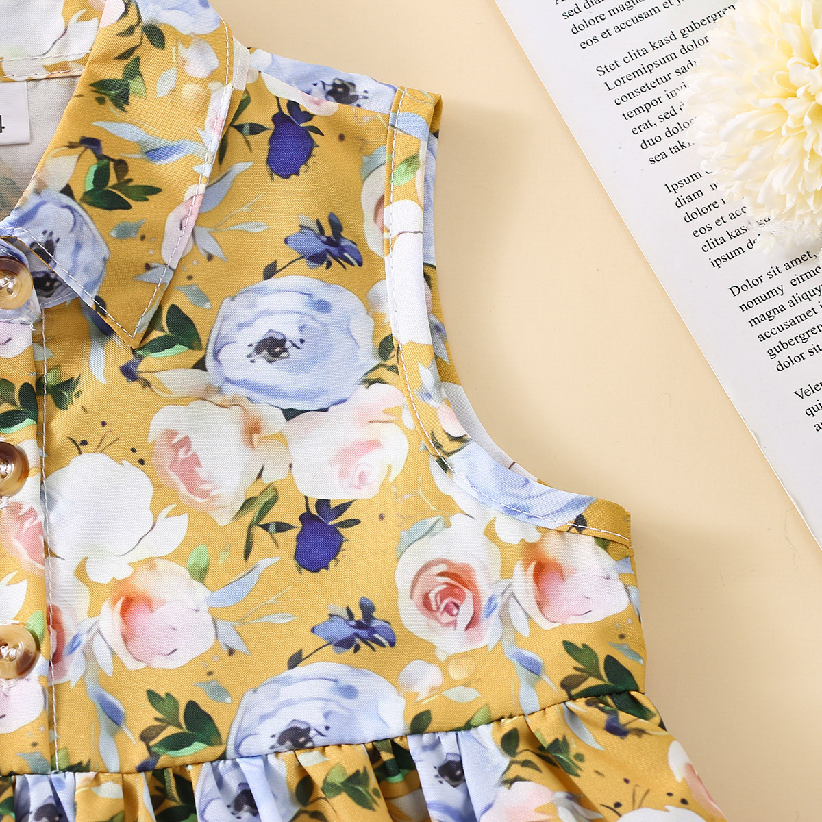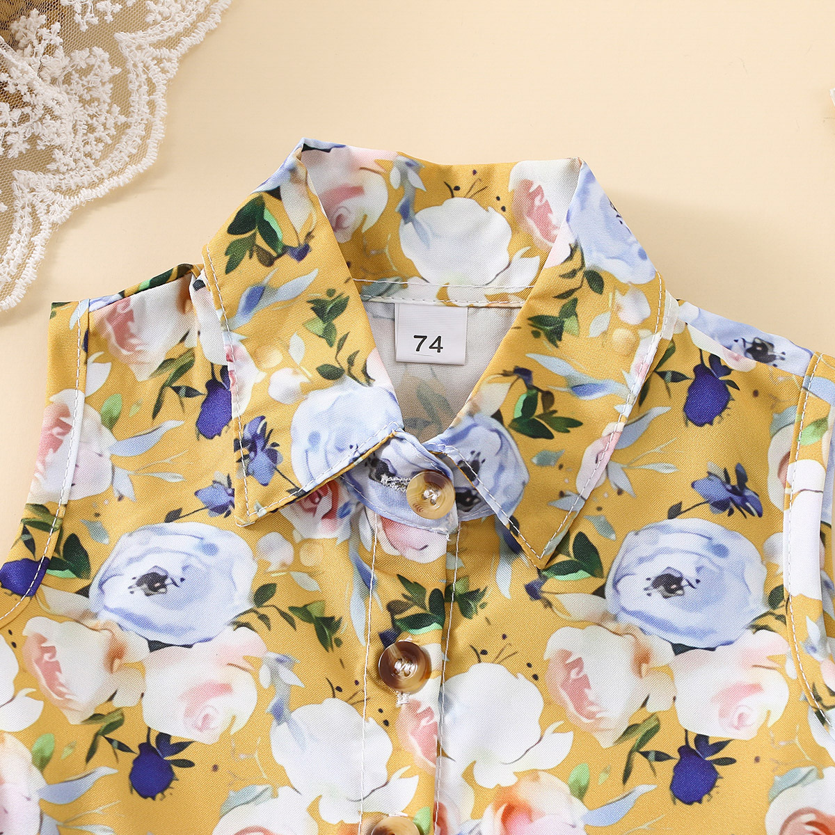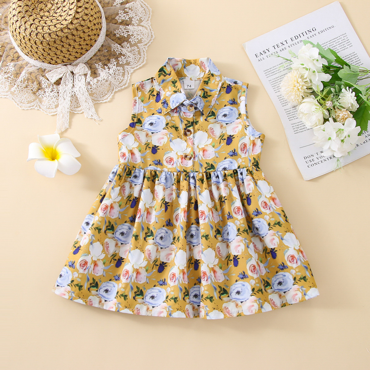 Baby Girl Floral Pattern Shirt-collar Sleeveless Dress Wholesale