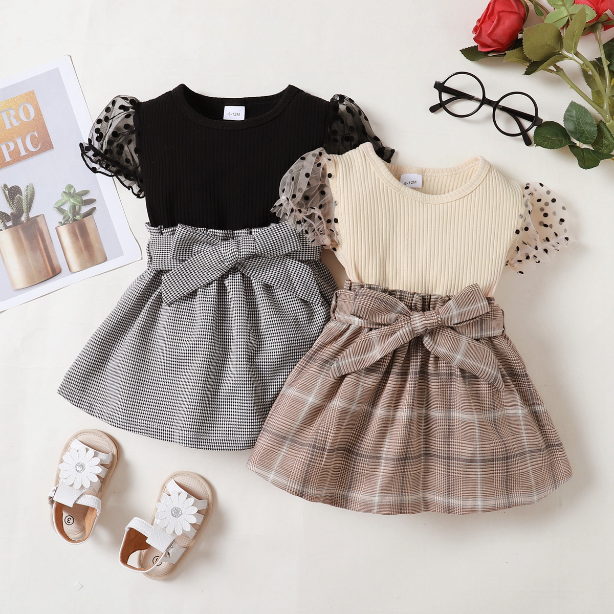 Toddler Girl Casual Sweet Plaid T-shirt & Skirt Wholesale
