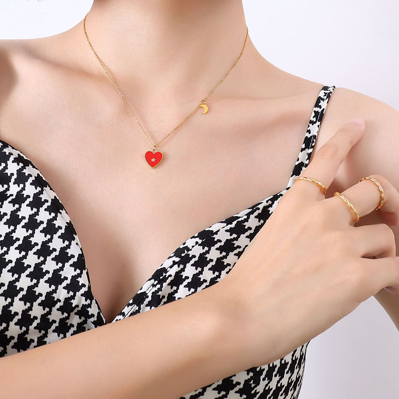 Red Heart With Central Diamond Necklace