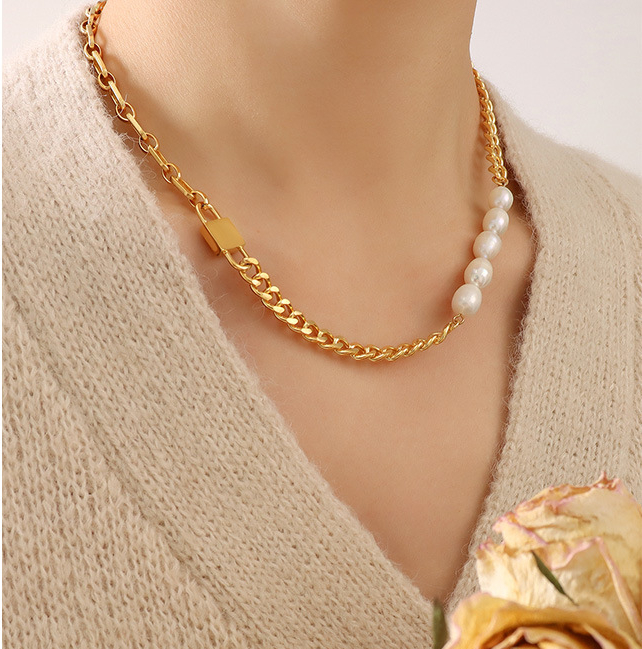 单属性商品1-Locker Style Chain With Pearl Pendant Necklace