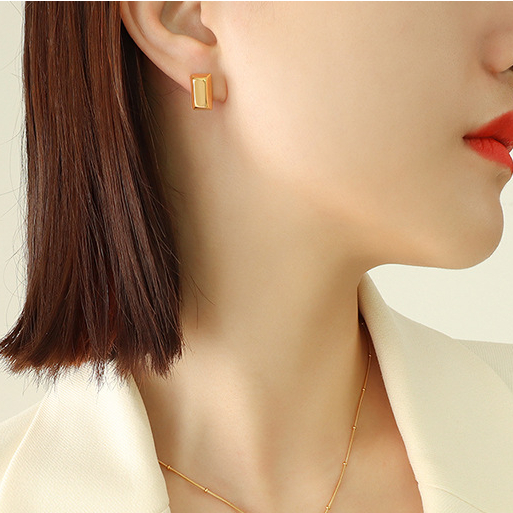Gold Brick Earing Studs