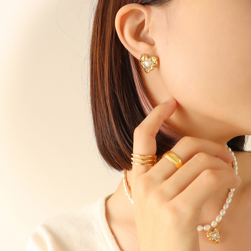 Hammerblow Texture With Pearl Earing Studs