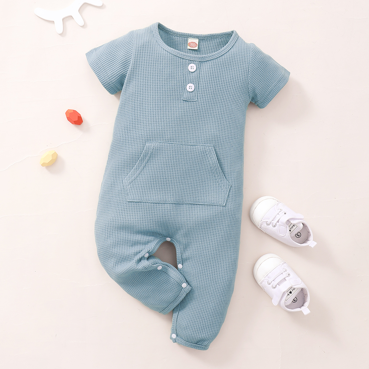 Baby Boy Solid Color Pocket Decoration Short-sleeve Jumpsuit Wholesale
