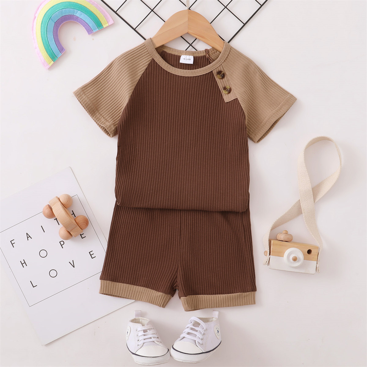 Toddler Boy Patchwork Color-block Ribbed Top & Shorts Wholesale