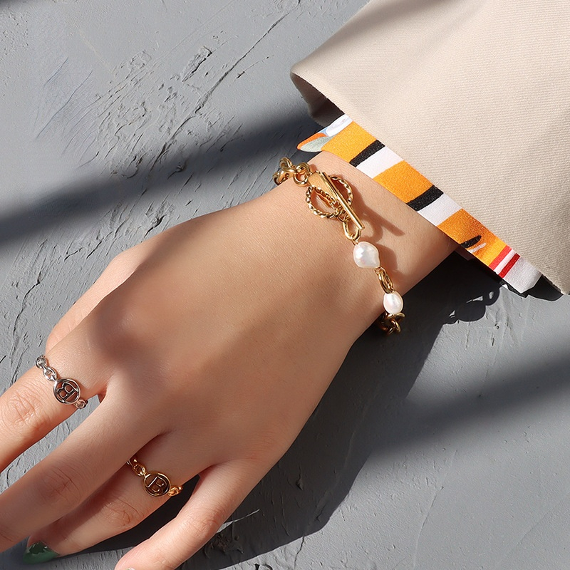 Chunky Chain Splicing Fresh Water Pearl OT Buckle Bracelet