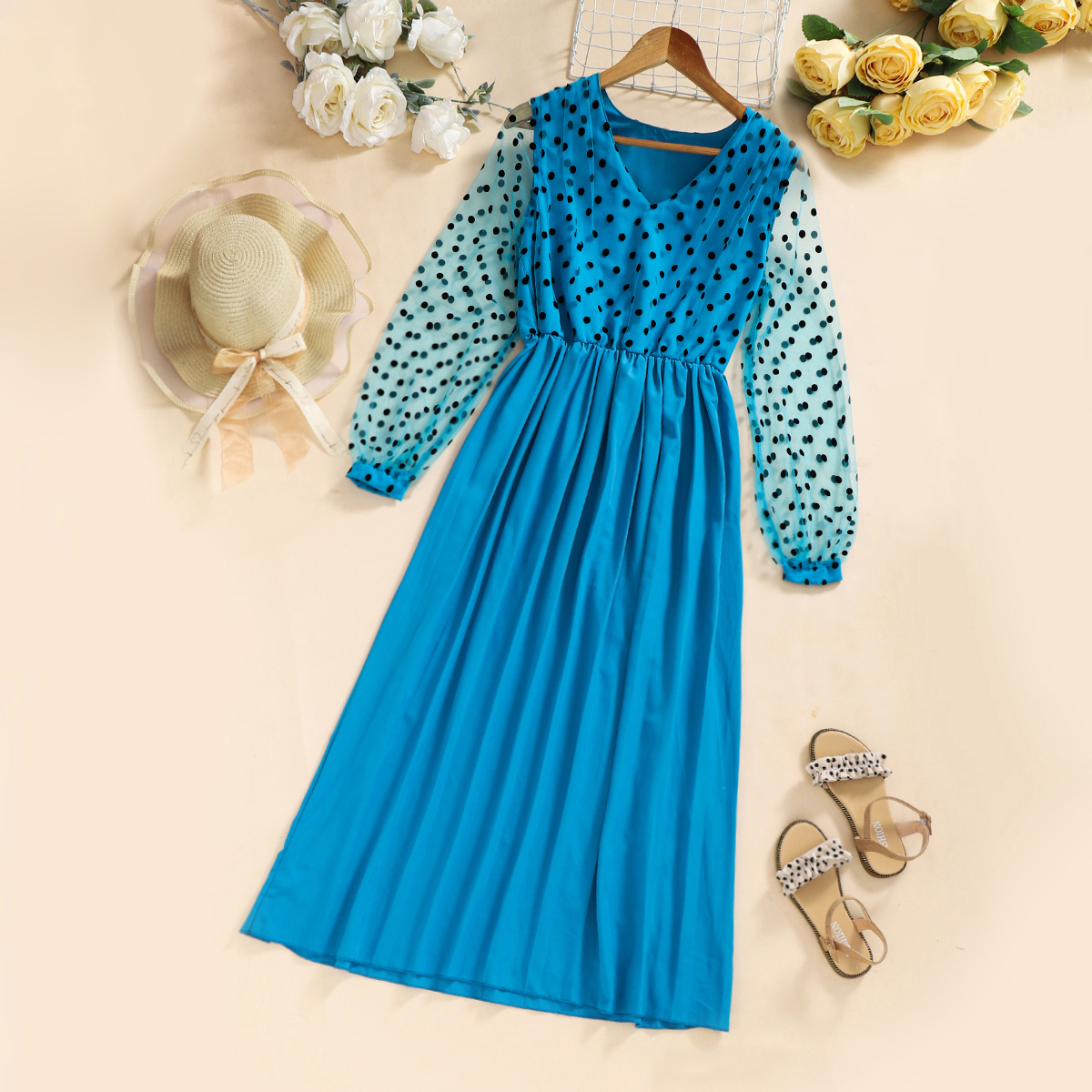 Elegant Wave Point Print Long Sleeve Dress for Mom and Me Wholesale