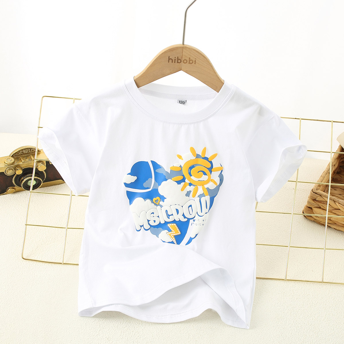 Boy Summer Leisure Daily Letter Scenery Solid Cloud Sun T-shirt Wholesale