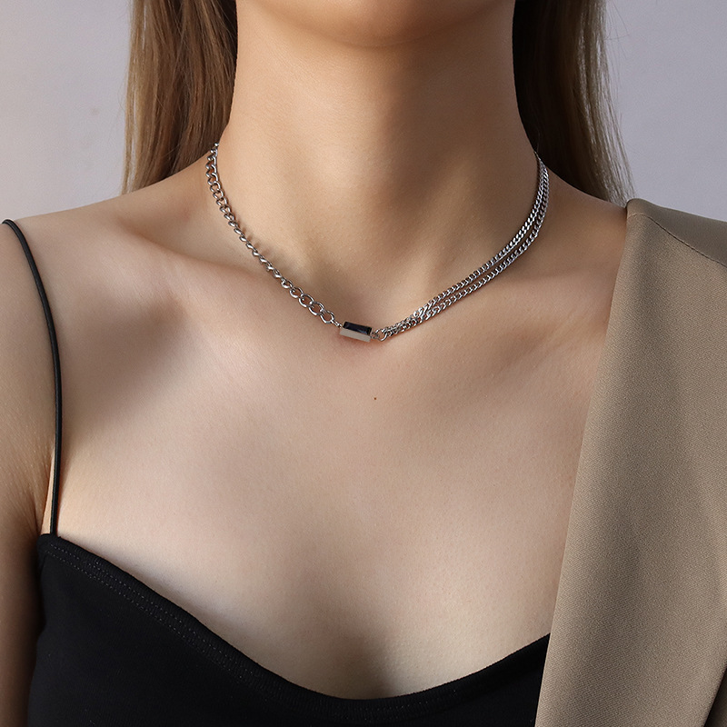 Double Layer Curb Chain Splicing Gemstone Necklace