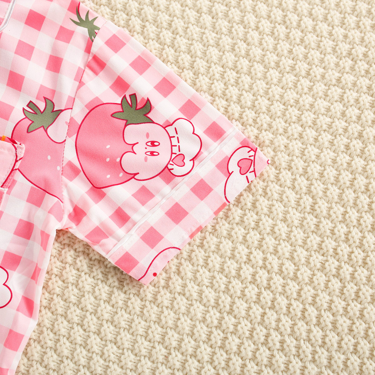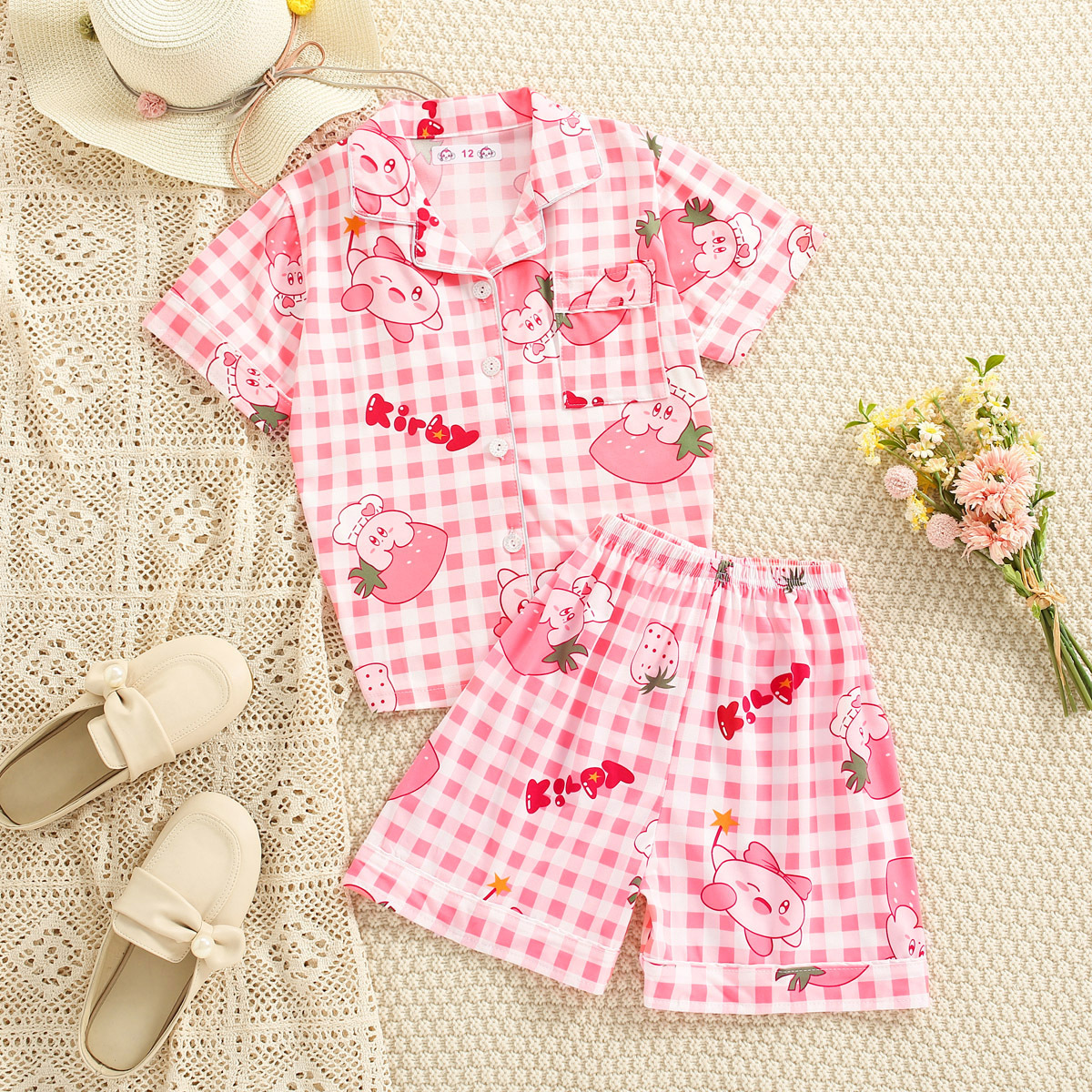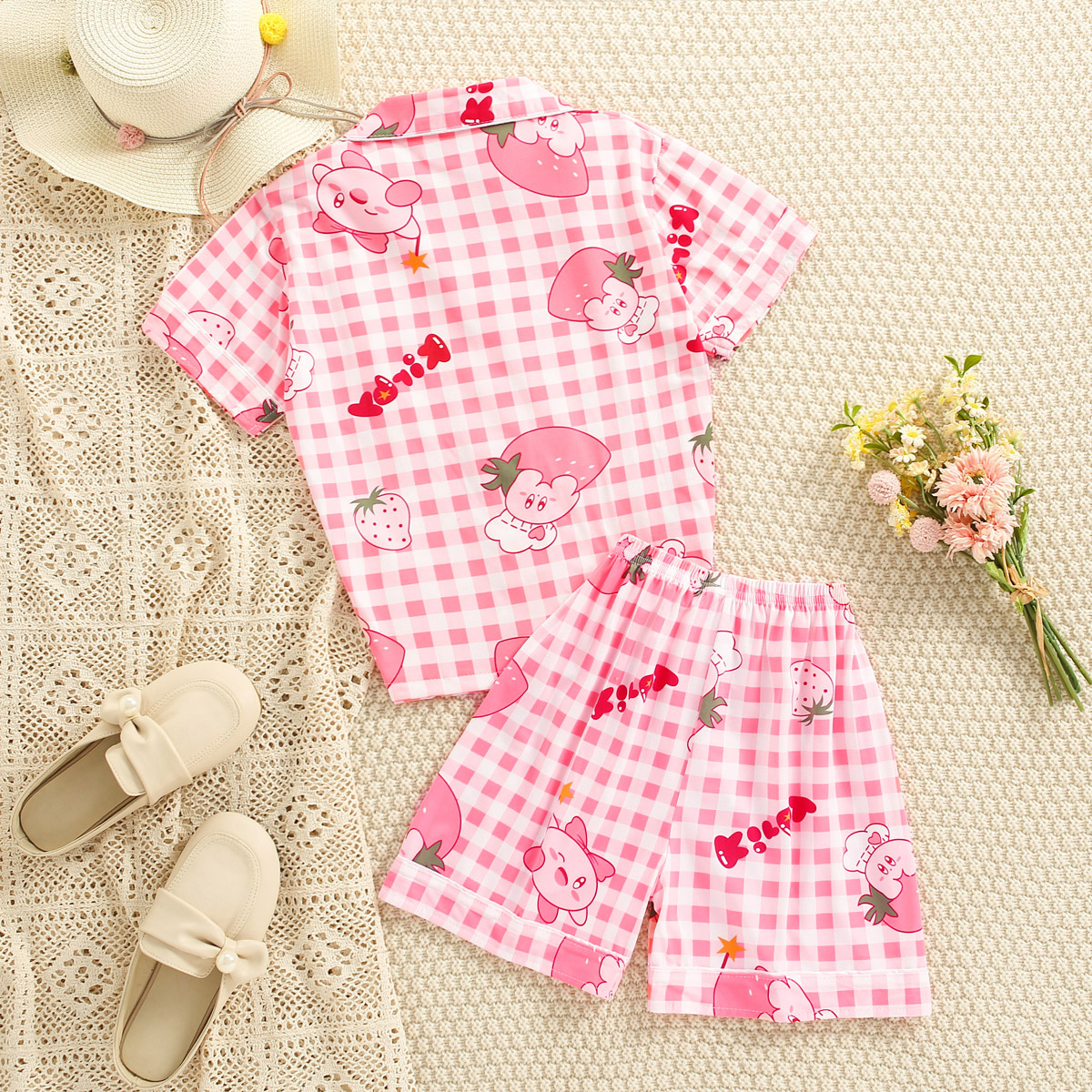 Girls Summer Cute Cartoon Plaid T-shirt & Shorts Wholesale