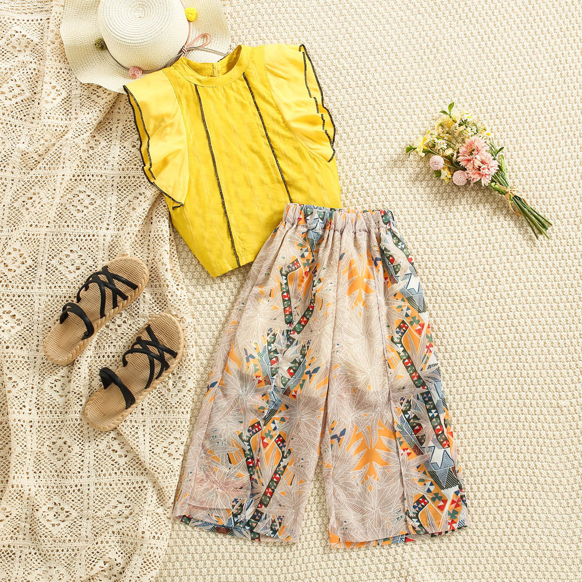 Girls Summer Sweet Solid ColorT-shirt & Boho Cropped pants Wholesale