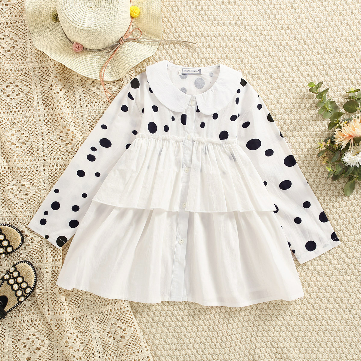 Kids Girls Sweet Cute Polka Dot Doll collar Long sleeve shirt Wholesale