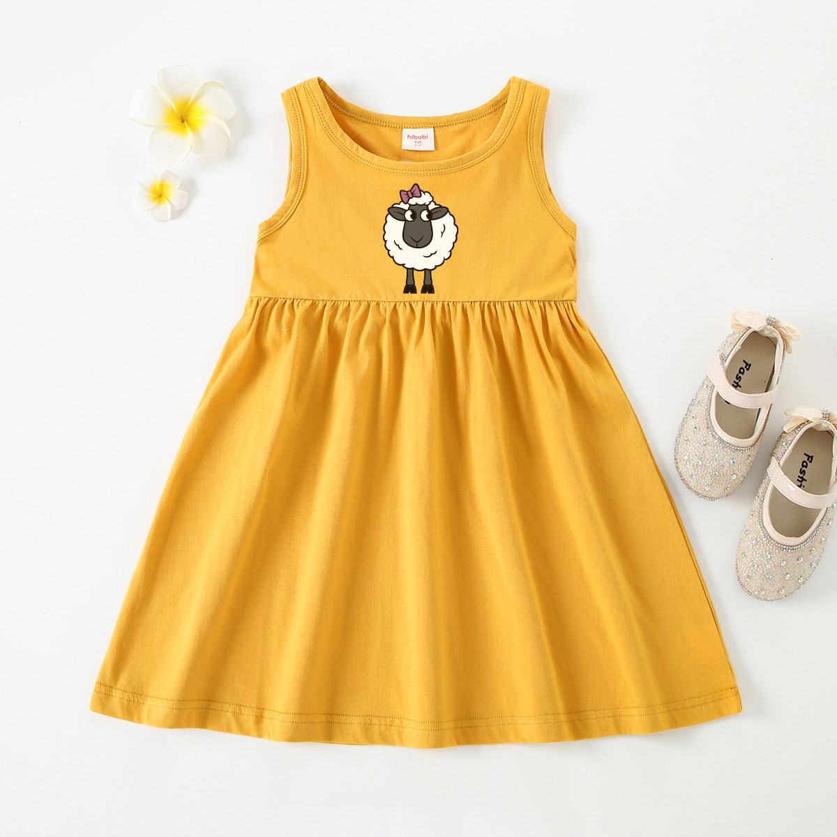 Toddler Girl Baby Basic Sheep With Bows Print Sleeveless Dress Wholesale