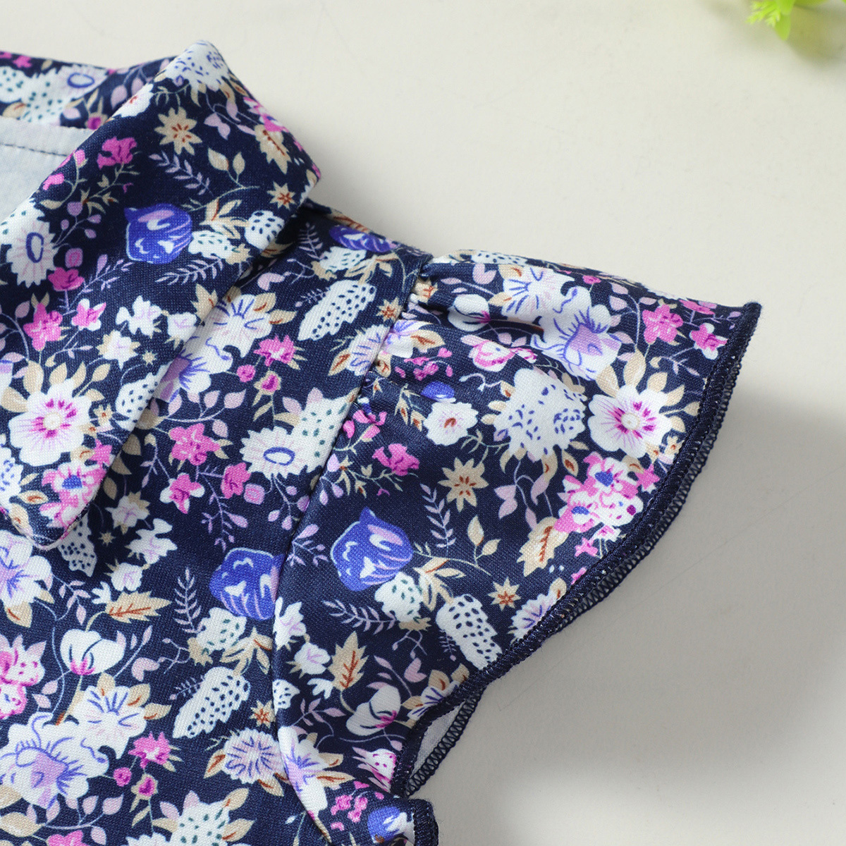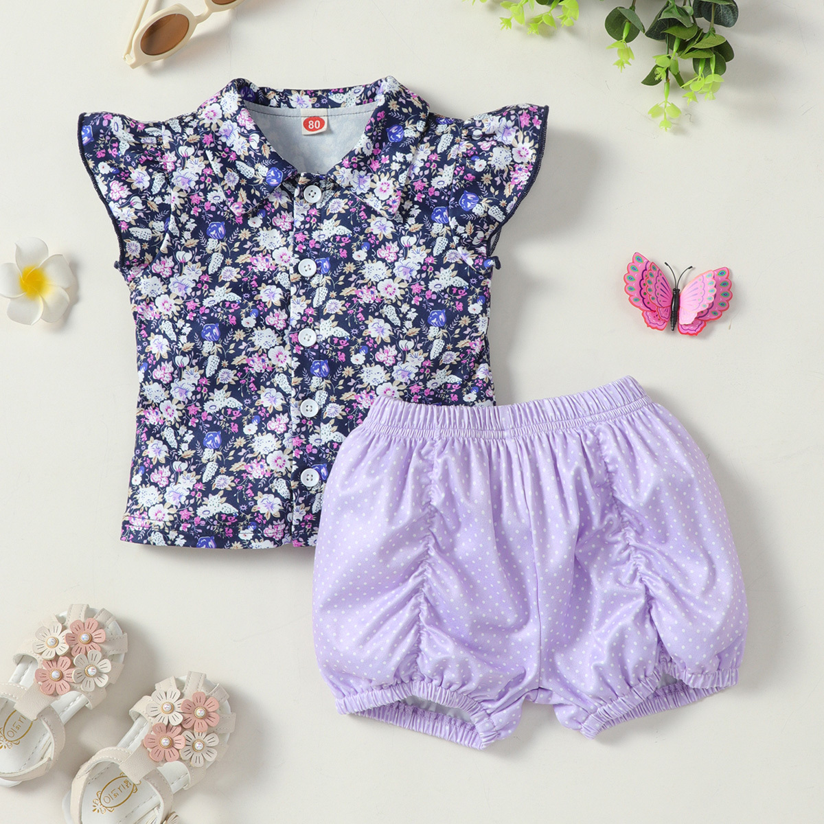 Baby Girl Floral Print Lapel Top And Polka dot Shorts Wholesale
