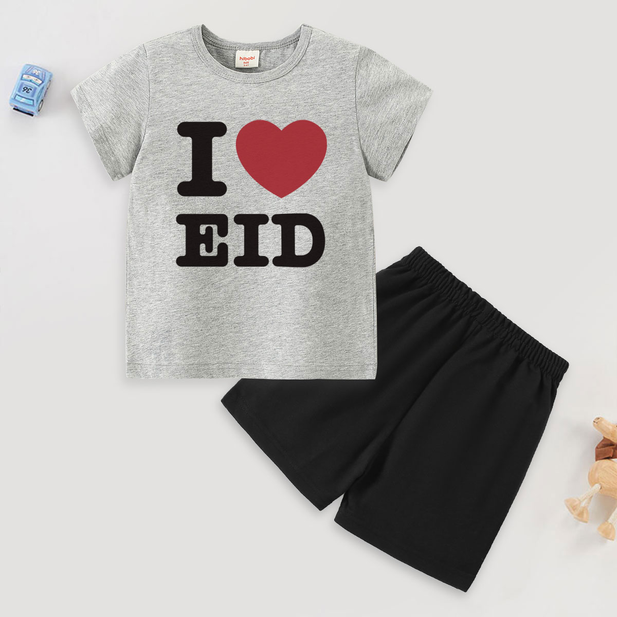 Toddler Boy Basic I love EID Print Short-sleeved T-shirt Suit Wholesale