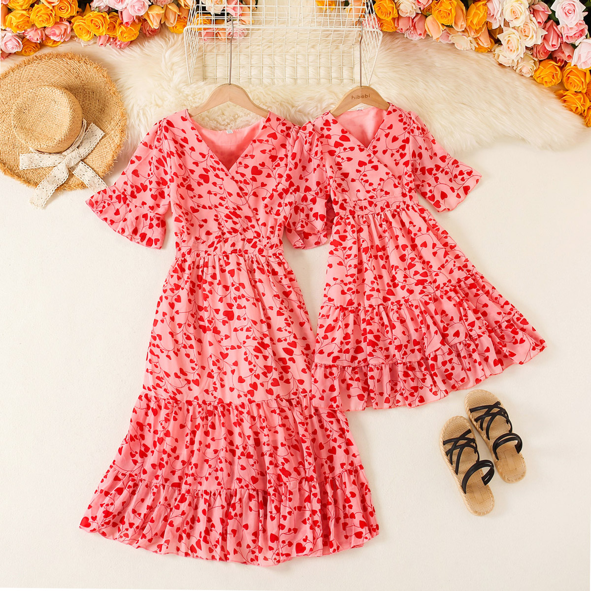 Sweet Floral Print Short Sleeve Dress for Mom and Me Wholesale