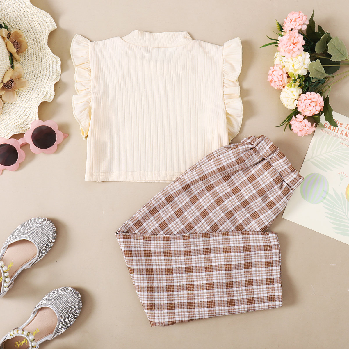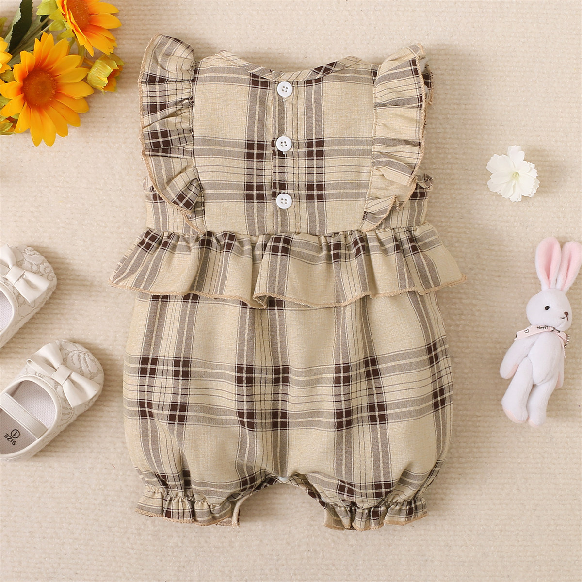 Baby Girl Plaid Pattern Ruffle-sleeve Romper Wholesale
