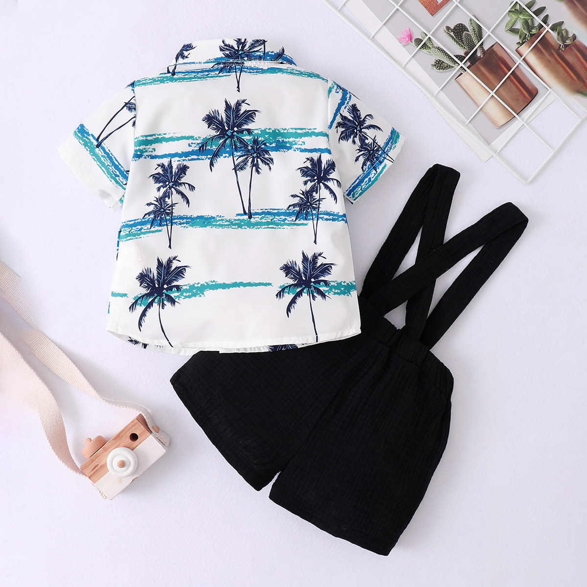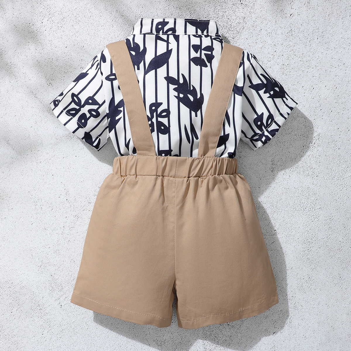 Baby Boy Gentleman Tropical Pattern Bow-knot Shirt & Suspender Shorts Wholesale