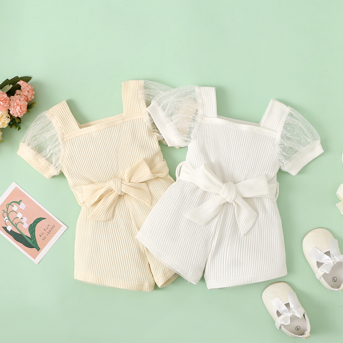 Baby Girl Mesh Short Sleeve Solid Bodysuit Wholesale