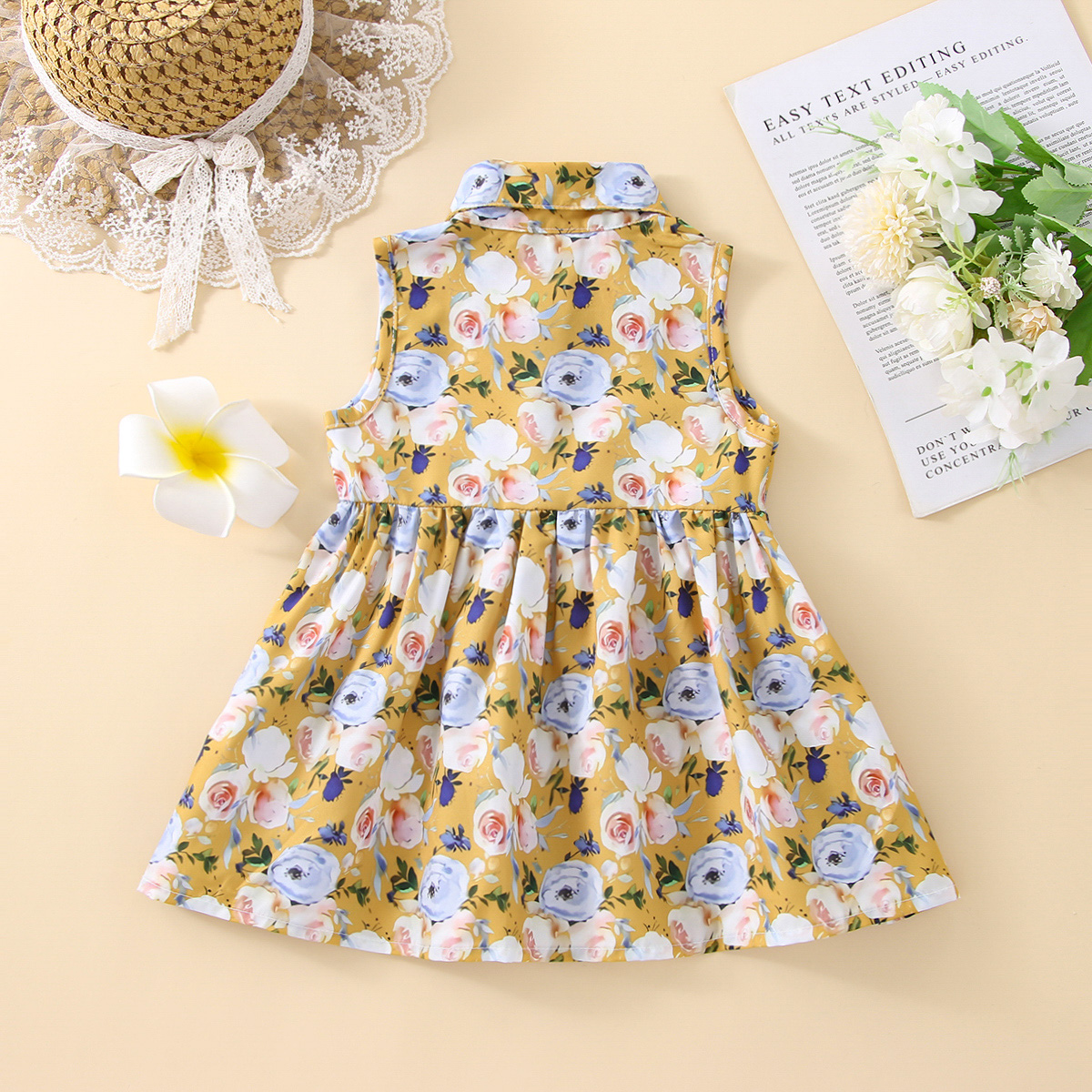 Baby Girl Floral Pattern Shirt-collar Sleeveless Dress Wholesale