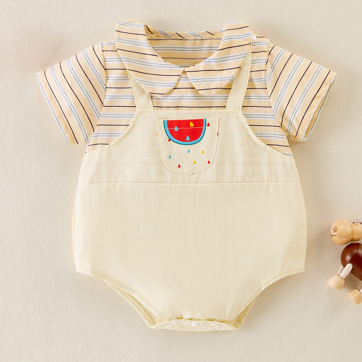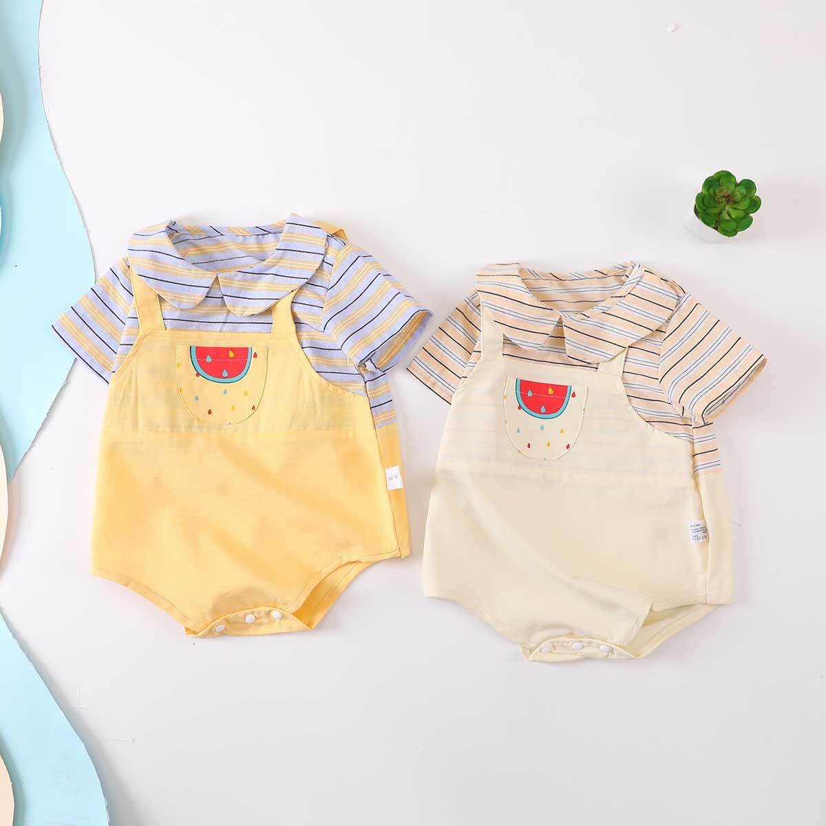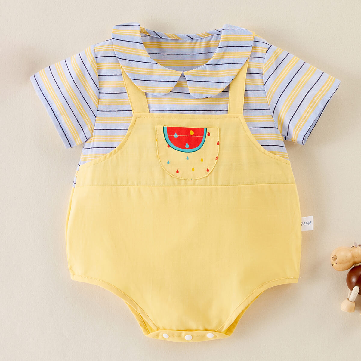 Baby Color-block Horizontal Stripes Watermelon Pattern Short-sleeve Bodysuit Wholesale