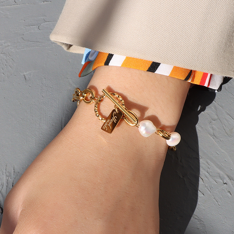 Light up your wrist with our LaFavour Splicing Series! Gentle pearl splicing chunky chain presents that modern fashion mixture. OT buckle makes it easy to put on and take off. Have a try!