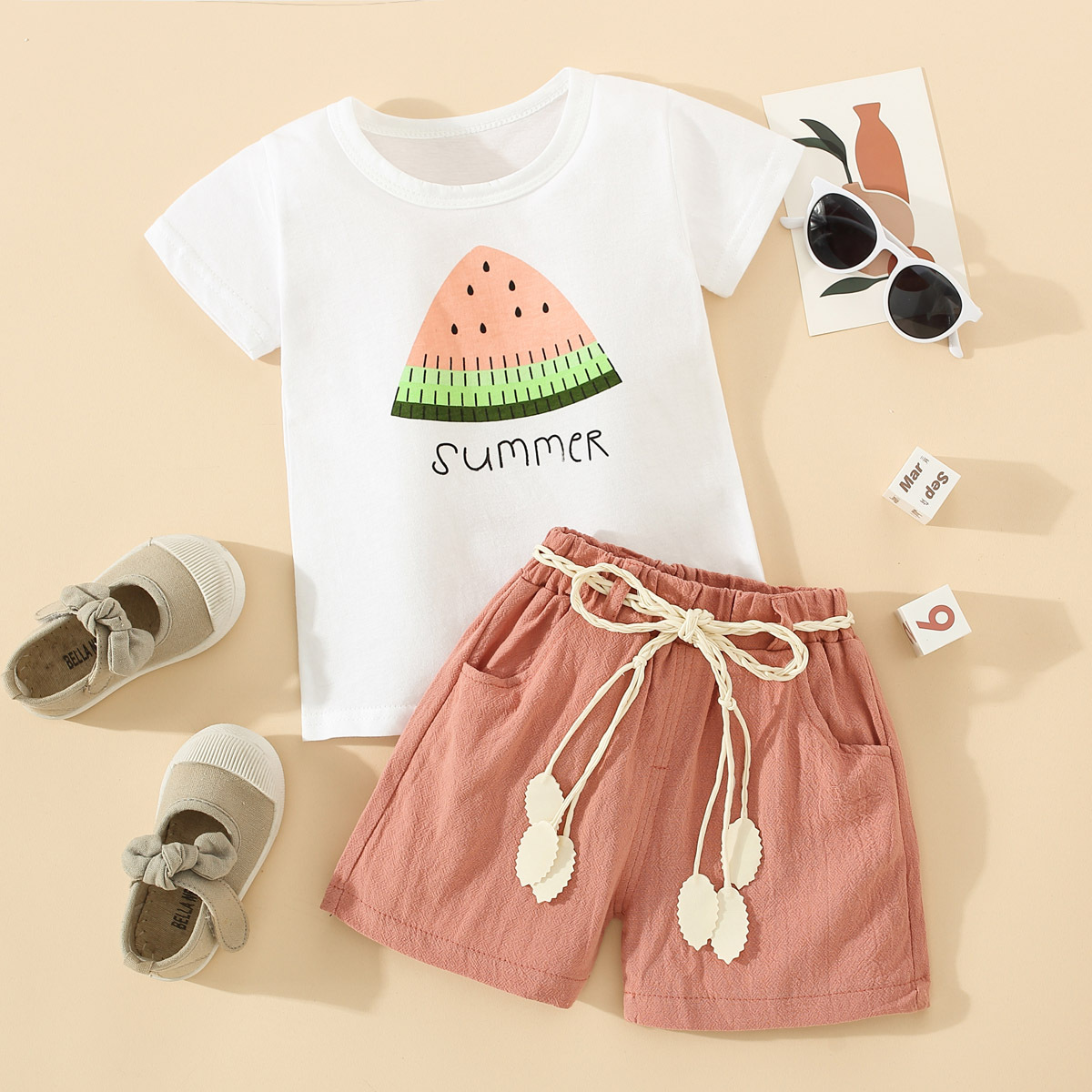 Toddler Girls Print Watermelon Cartoon Top & Shorts Wholesale