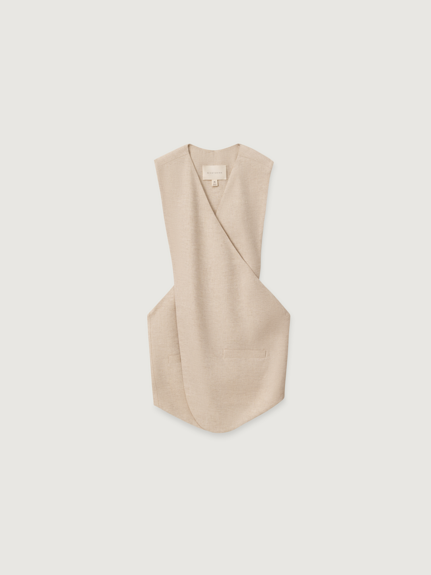 询盘商品-WRAP OVER LINEN VEST IN BEIGE