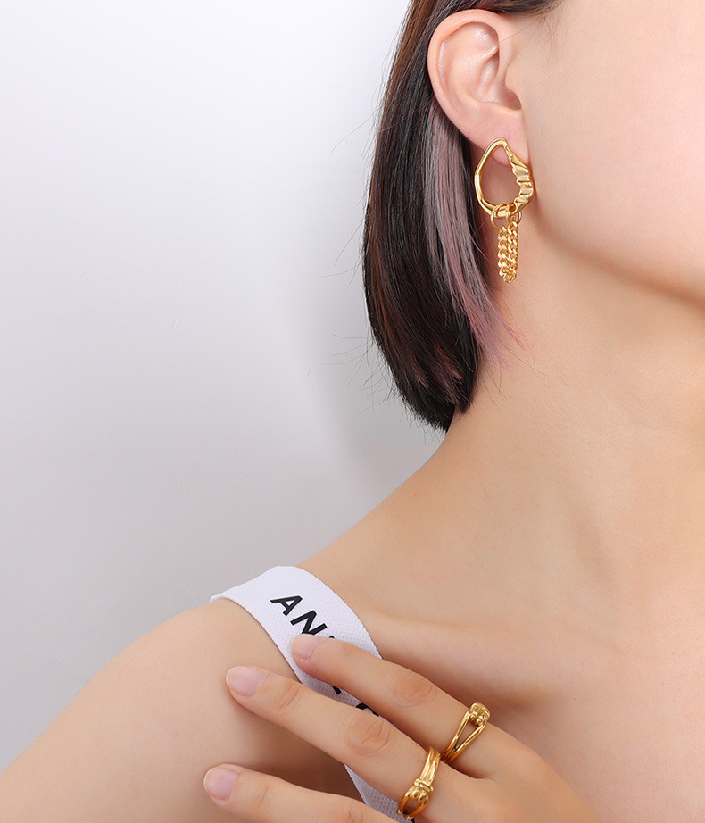 Asymmetrical design really makes the pair stand out! Pearl is dainty and gentle, while the chain gives a modern classy fashion, so there goes a perfect match up! You can also wear them as single ear earing as well!