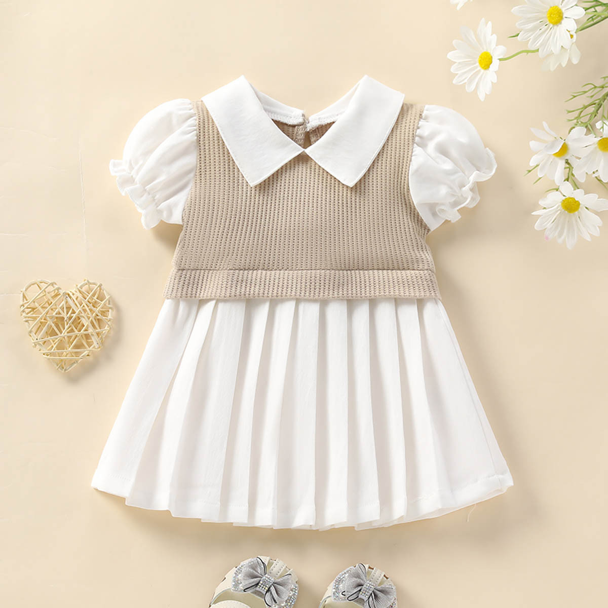 Baby Girl Color-block Short-sleeve Lapel Pleated Dress Wholesale