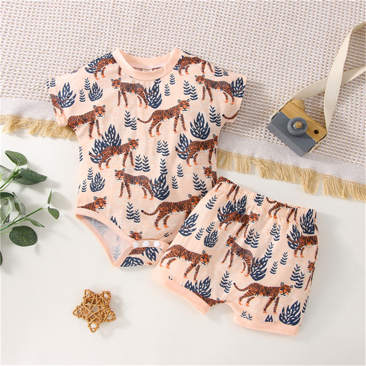 Baby 2 Pieces Animal Tropical Pattern Bodysuit & Shorts Wholesale