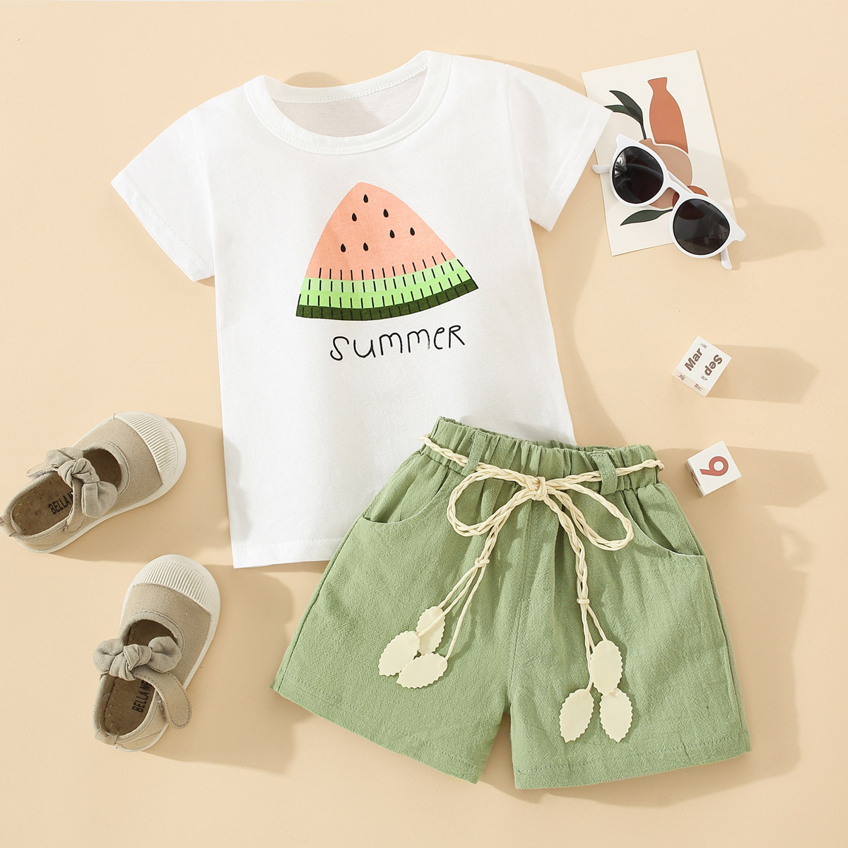 Toddler Girls Print Watermelon Cartoon Top & Shorts Wholesale