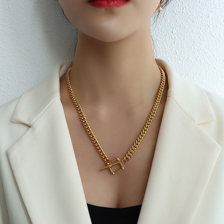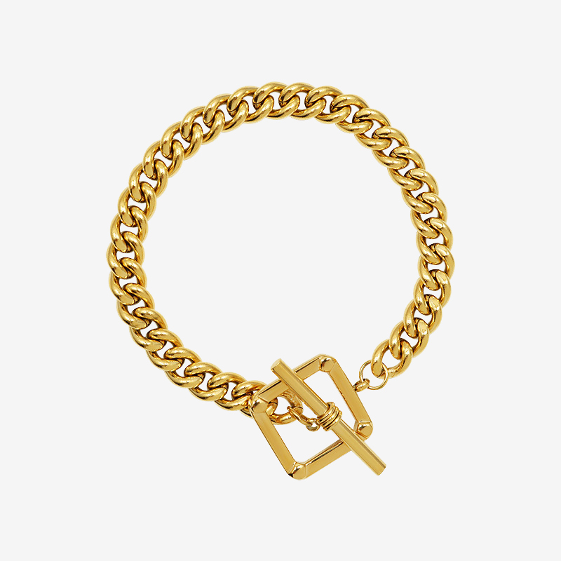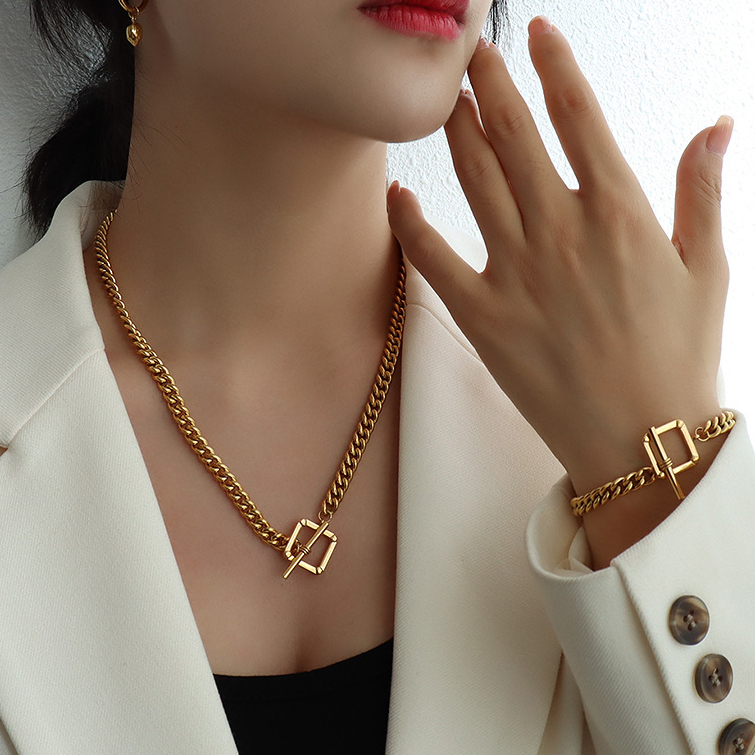 Square Shape OT Buckle Chunky Chain Necklace & Bracelet Set