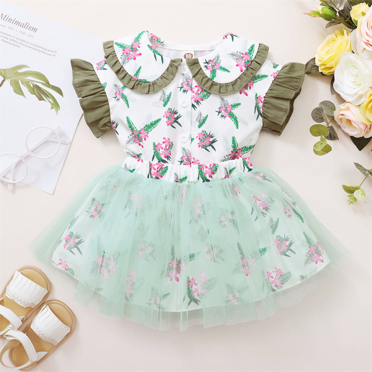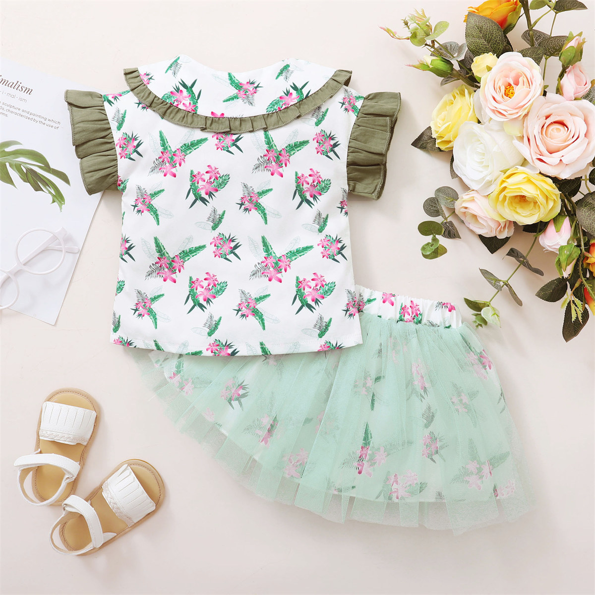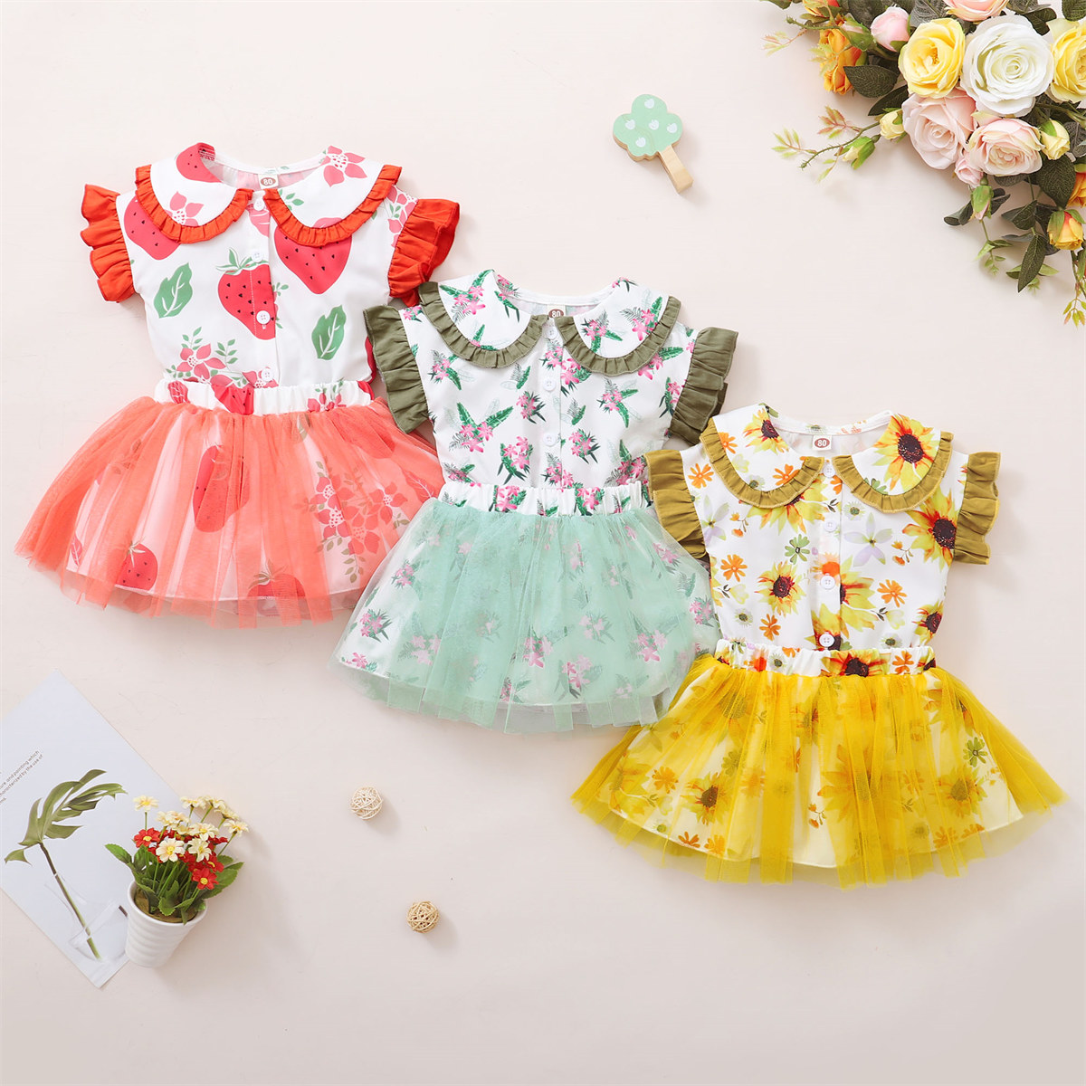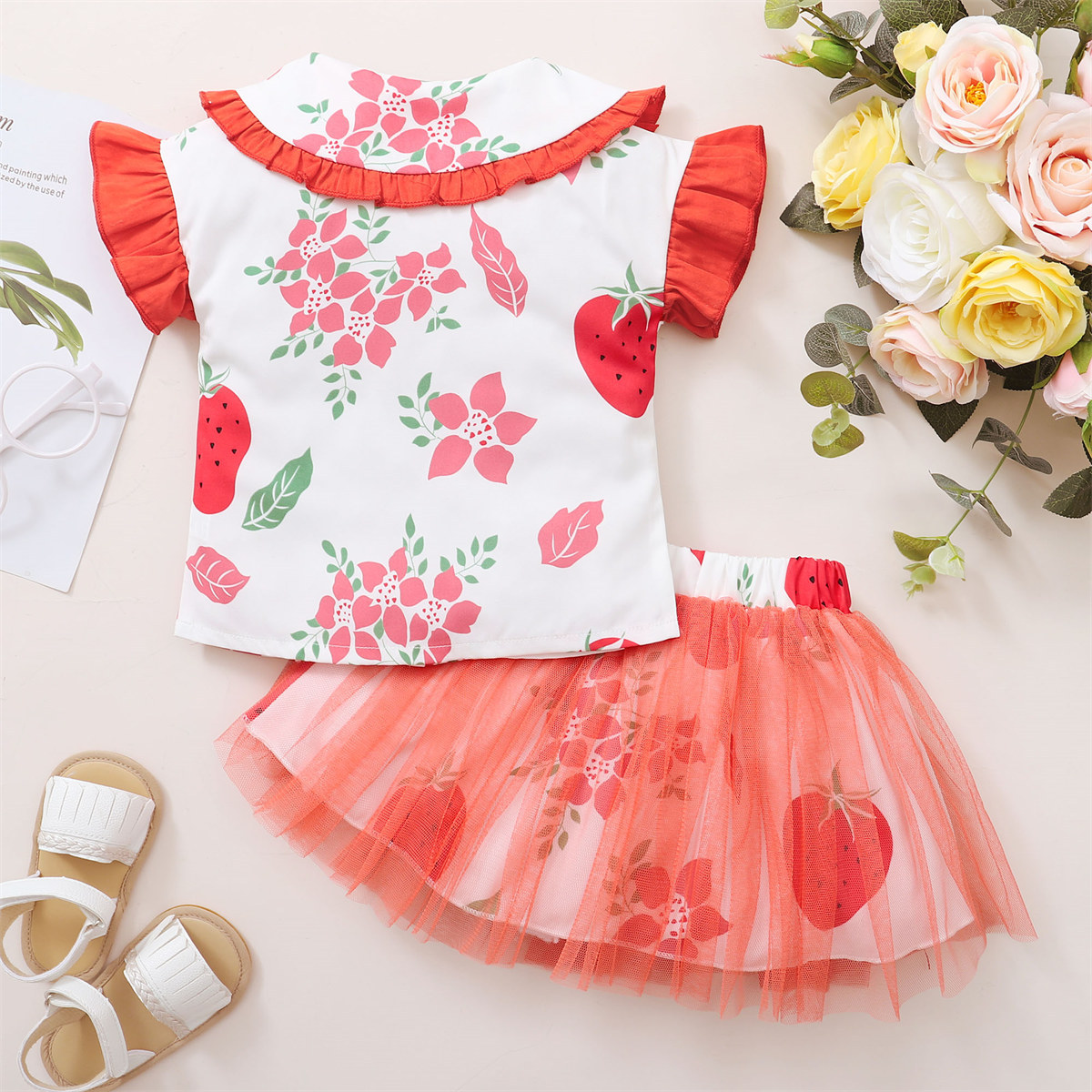 Toddler Girls Tropical Strawberry Print Ruffled Sleeve Top & Skirt Wholesale